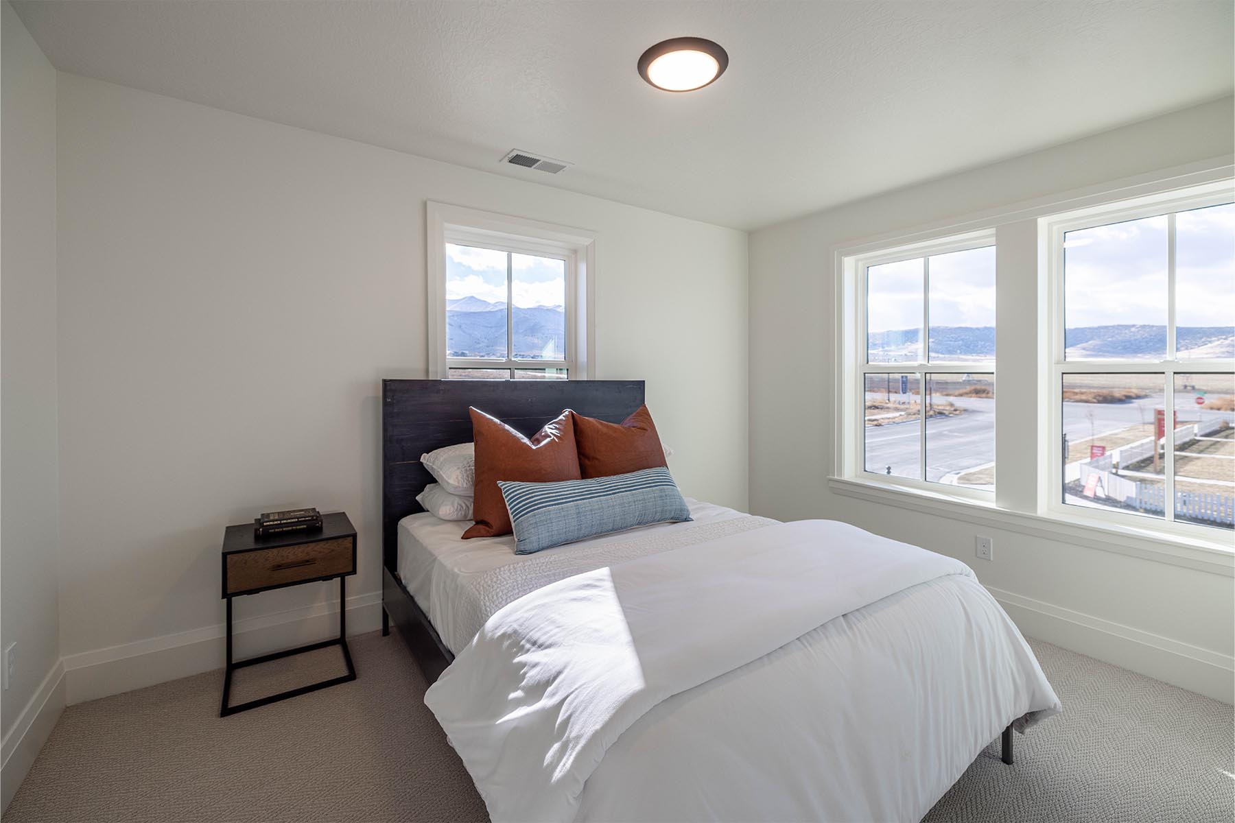 The Arlington Craftsman at Terraine in West Jordan blends timeless curb appeal with thoughtful design, all on a spacious corner lot in the exclusive Northlight Collection. This home welcomes you with charming exterior details and a smart interior layout featuring an open-concept kitchen, breakfast nook, and great room—perfect for gathering and everyday living. Just off the nook, a convenient mudroom and powder bath add function to the main level. Two flexible spaces near the front entry offer room for a home office, formal dining, or a cozy sitting area to fit your lifestyle. Upstairs, the vaulted primary suite delivers comfort and luxury with a freestanding tub, dual vanities, a tiled shower, and a generous walk-in closet. Two secondary bedrooms, a full bathroom, and a well-placed laundry room complete the upper floor. Downstairs, the partially finished walkout basement offers even more living space with two additional bedrooms, another full bath, and a large rec room ideal for entertaining or relaxing.