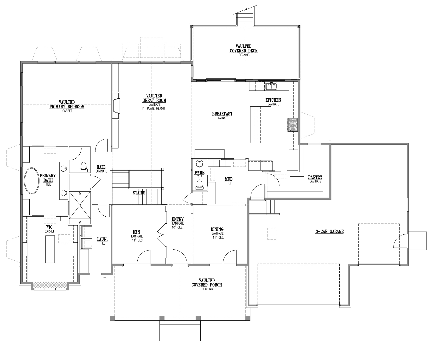 The Millcreek Farmhouse II by Rainey Homes in Miller Meadows combines luxury, space, and thoughtful design. A vaulted covered porch welcomes you into an elegant entry with an 11' ceiling den and dining room. The open vaulted great room flows into a gourmet kitchen with high-end appliances and an XL pantry, while the deluxe owner’s suite offers a vaulted bedroom and a huge walk-in closet with a storage island. Enjoy 685 sq. ft. of vaulted covered outdoor living, plus a partially finished basement with four bedrooms, two baths, a rec room, and ample storage.