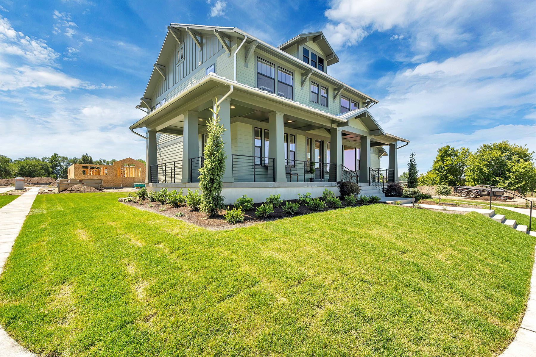 The Hampton is a spacious and luxurious floor plan featuring a grand master suite, two flex spaces off of the entry, and an open-concept kitchen, living and dining room. The large covered porch offers a comfortable outdoor living area. The home is finished with high-end materials and is available in three different, stylish craftsman elevations. The garage options include either a tandem 4-car garage or a 3-car garage, both of which provide ample space for vehicles and storage.