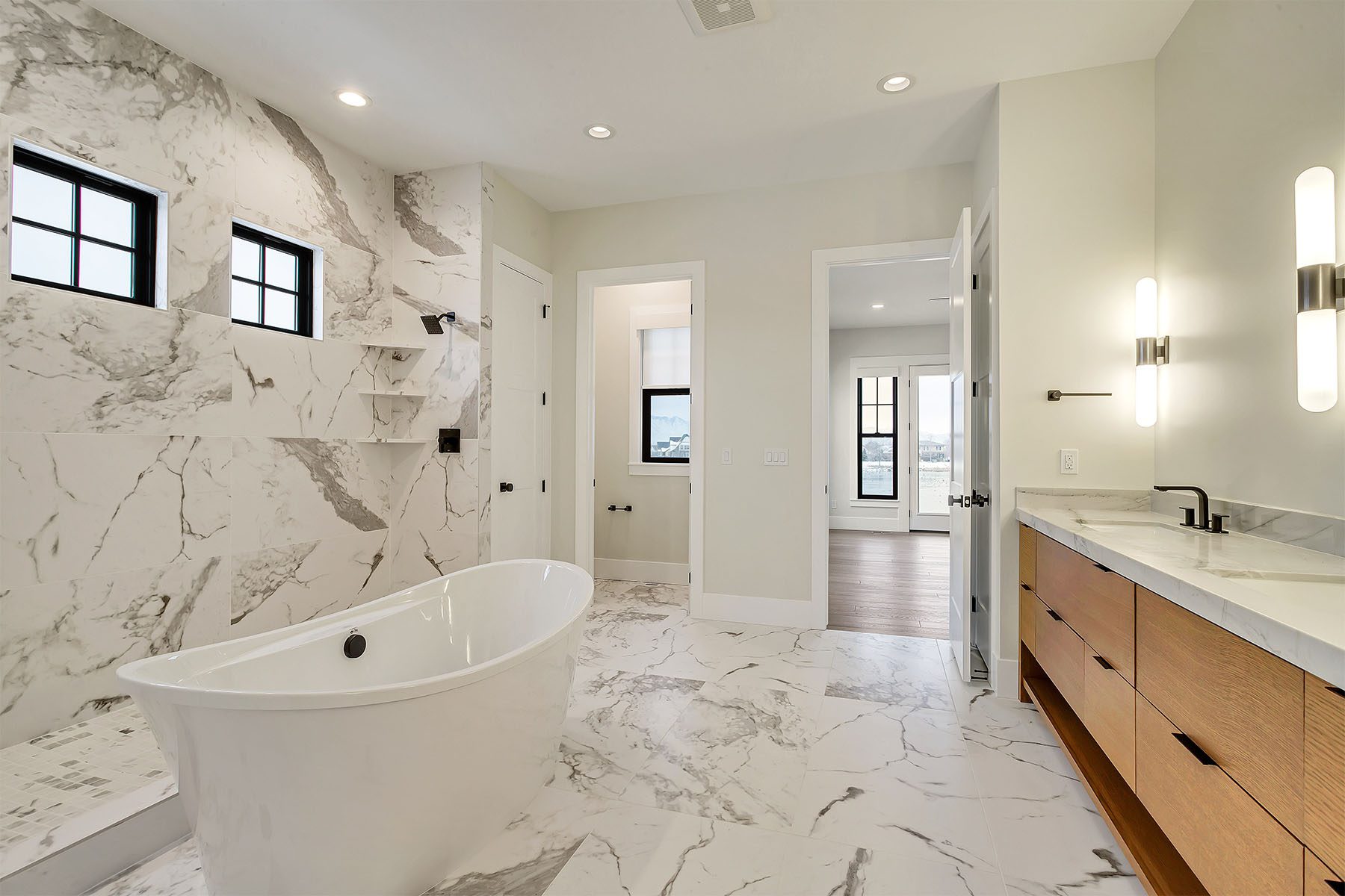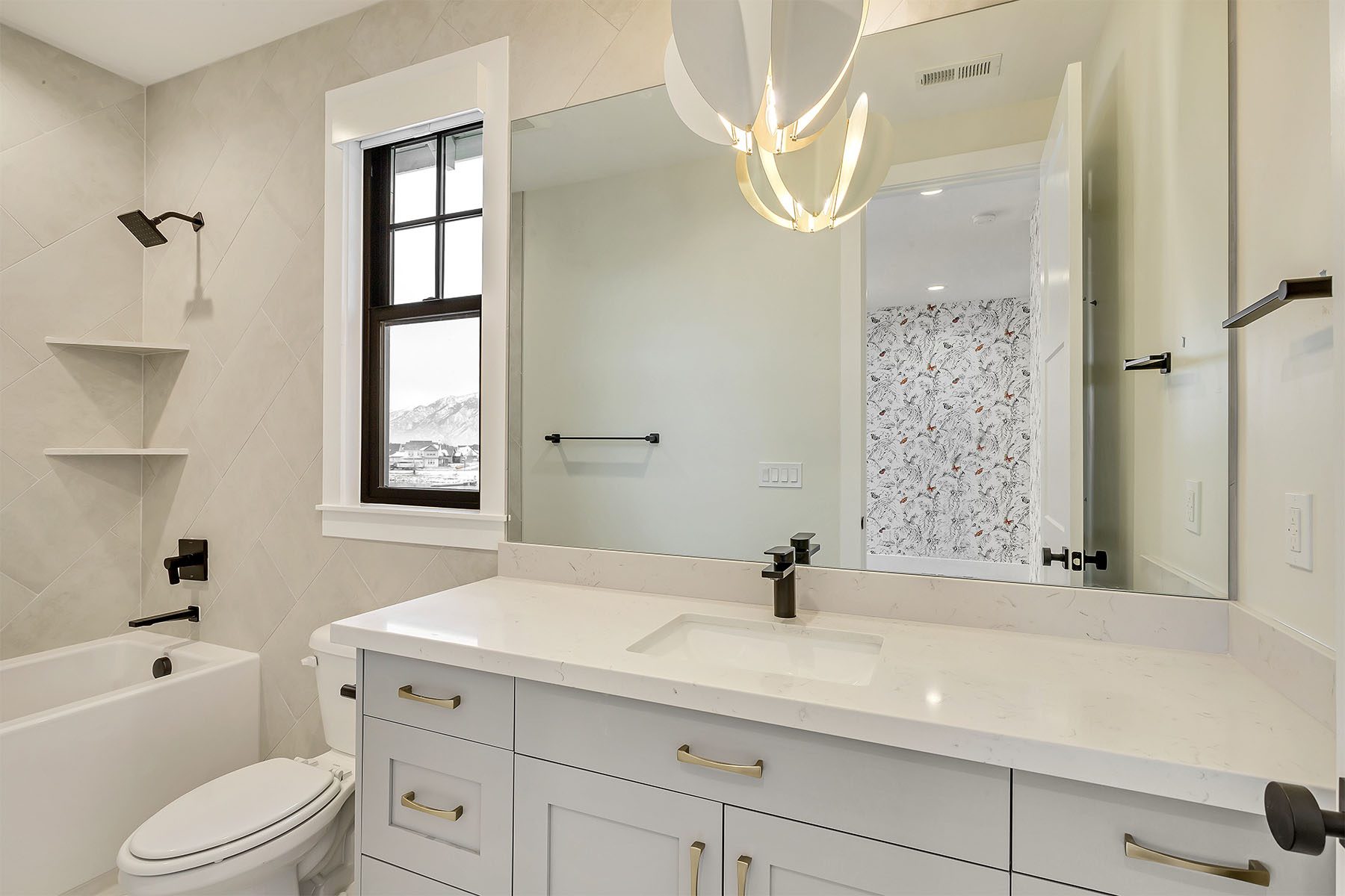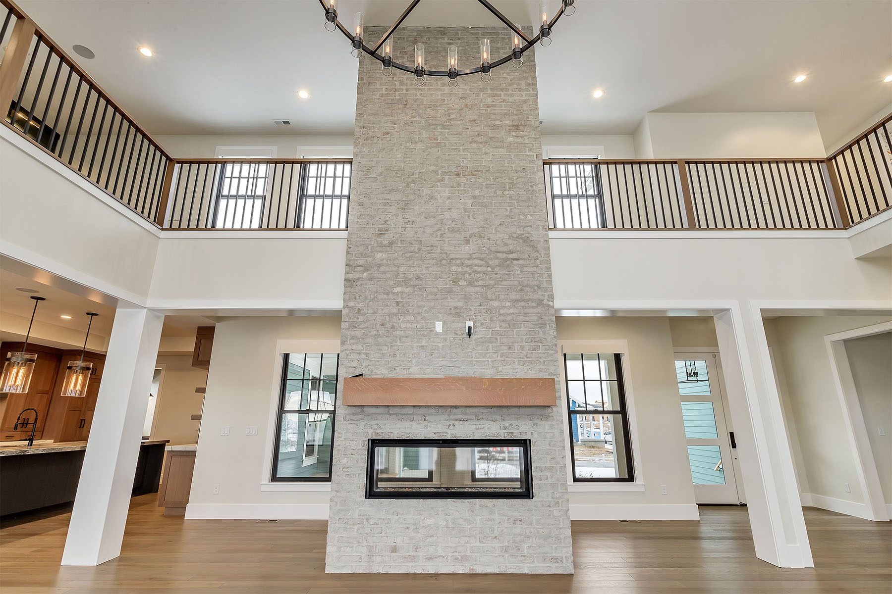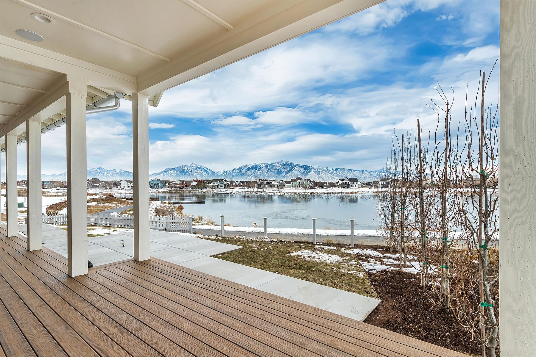 This luxurious home on the Island at Daybreak offers breathtaking lakefront views. The two-story great room is an awe-inspiring space, with a magnificent floor-to-ceiling brick fireplace that creates a warm and inviting atmosphere. The kitchen, with its spacious kitchen island, is both functional and stylish, including a convenient hidden pantry for additional storage. The master suite, located on the main floor, boasts a private patio with stunning lake views, as well as a large walk-in closet with a laundry area. The basement is a true entertainer's paradise, complete with a wet bar, a spacious rec room, a movie theater, and a gym for fitness enthusiasts. This home is adorned with elegant touches throughout, making it a one-of-a-kind, sophisticated residence.