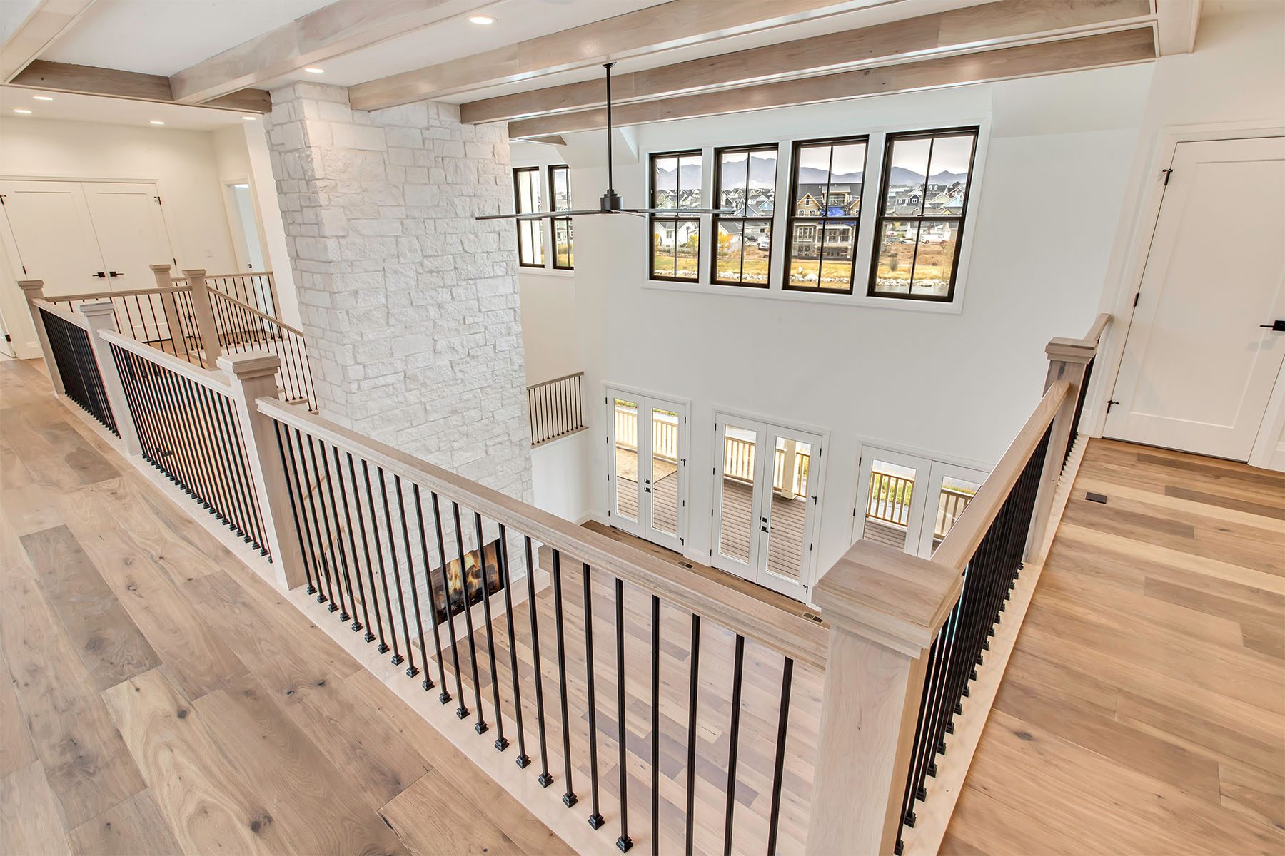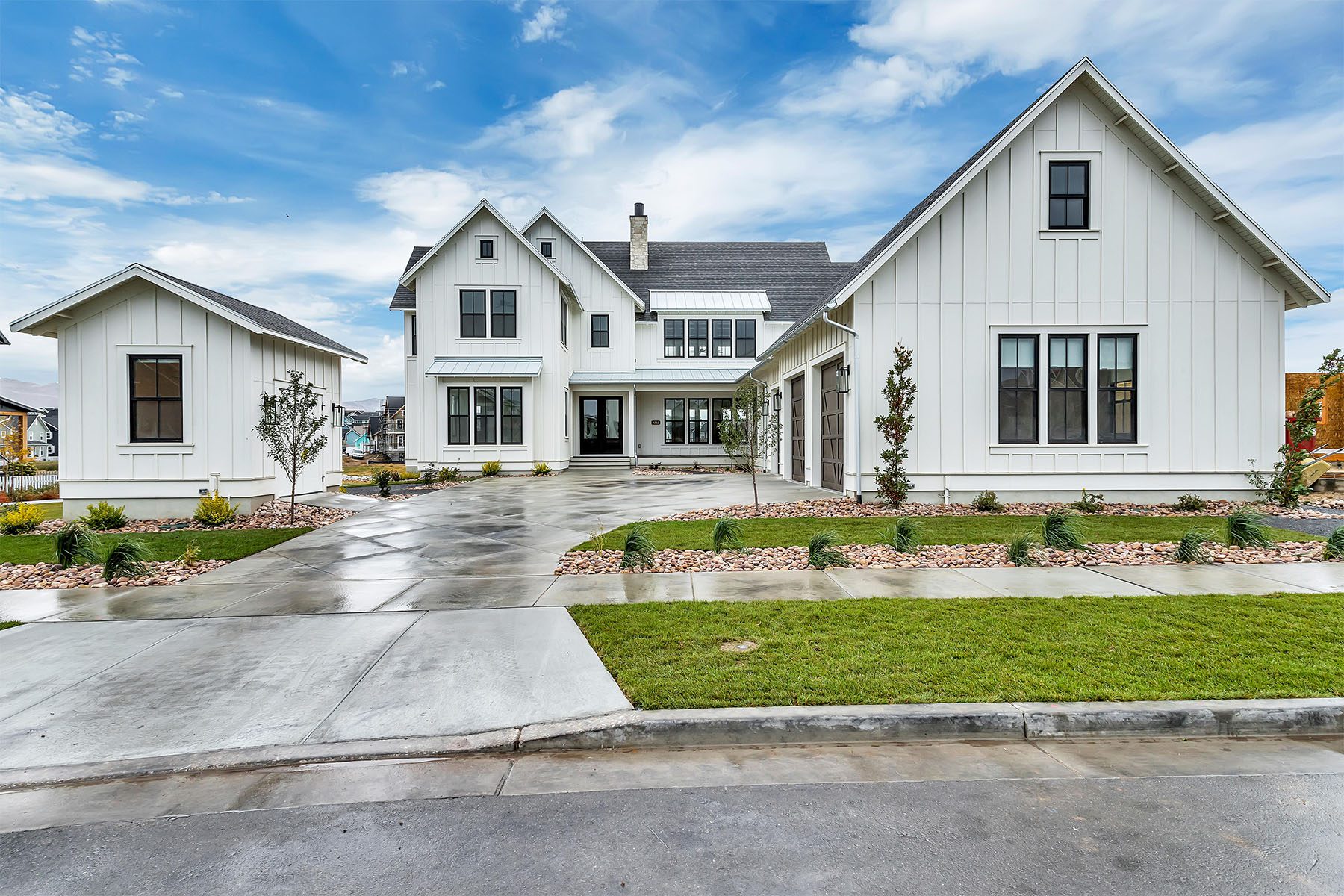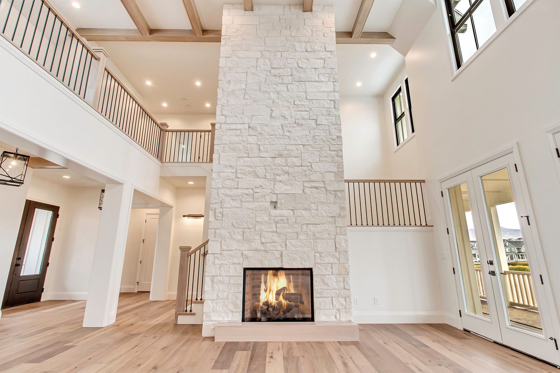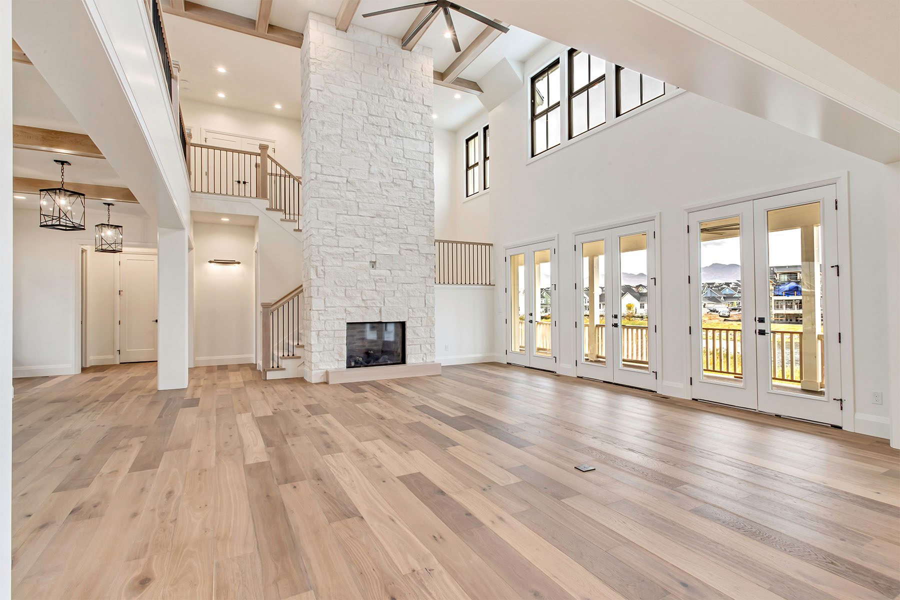 This luxury home on the Island at Daybreak boasts stunning lakefront views from its courtyard. The two-story great room is a showstopper, featuring beamed ceilings and a floor-to-ceiling fireplace, creating a warm and inviting atmosphere. The gourmet kitchen is both functional and stylish, with a hidden pantry for extra storage. The master suite, located on the main floor, has a private patio and breathtaking lake views. The fully-finished basement is an entertainer's paradise, offering a wet bar, spacious rec room, a hidden "Speak Easy", and a gym for fitness enthusiasts. The home is finished with luxury touches throughout, making it a truly unique and sophisticated residence.