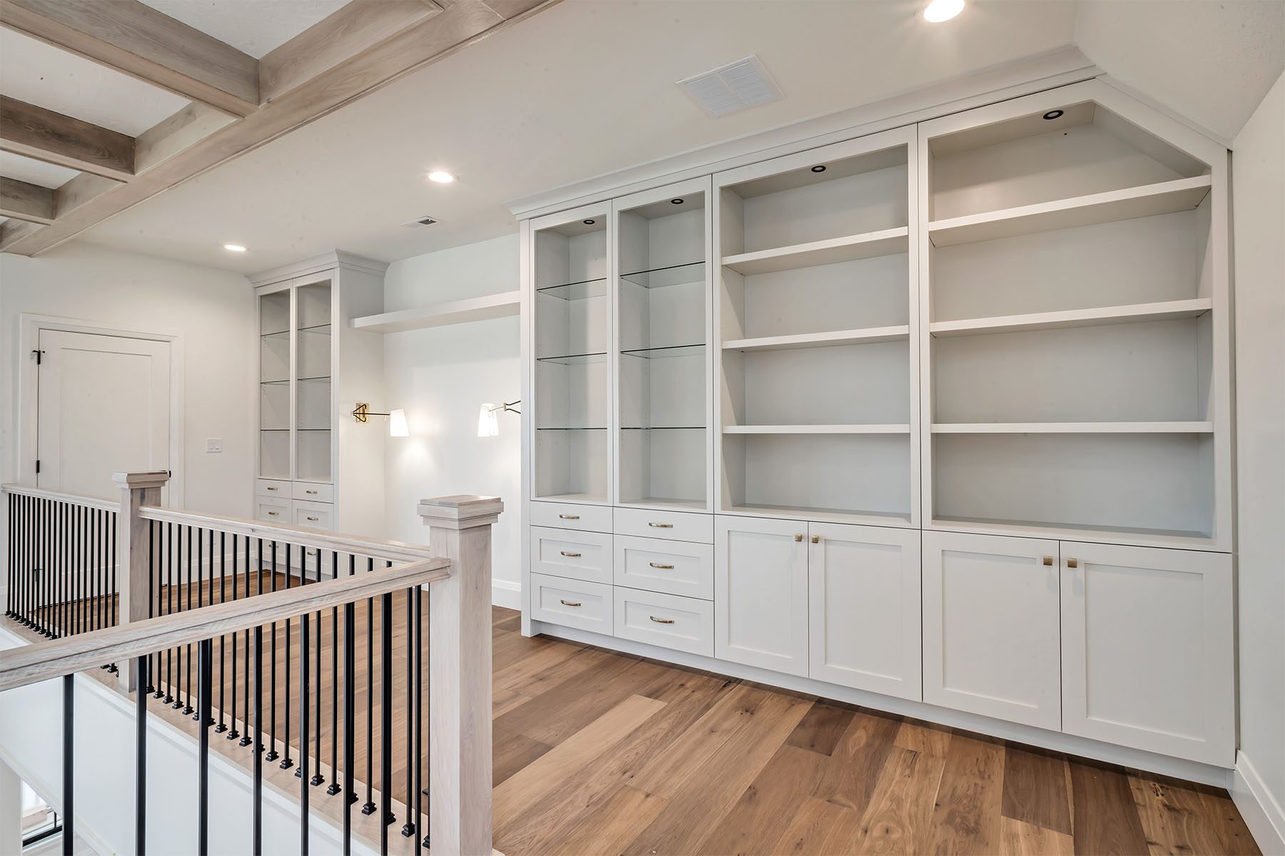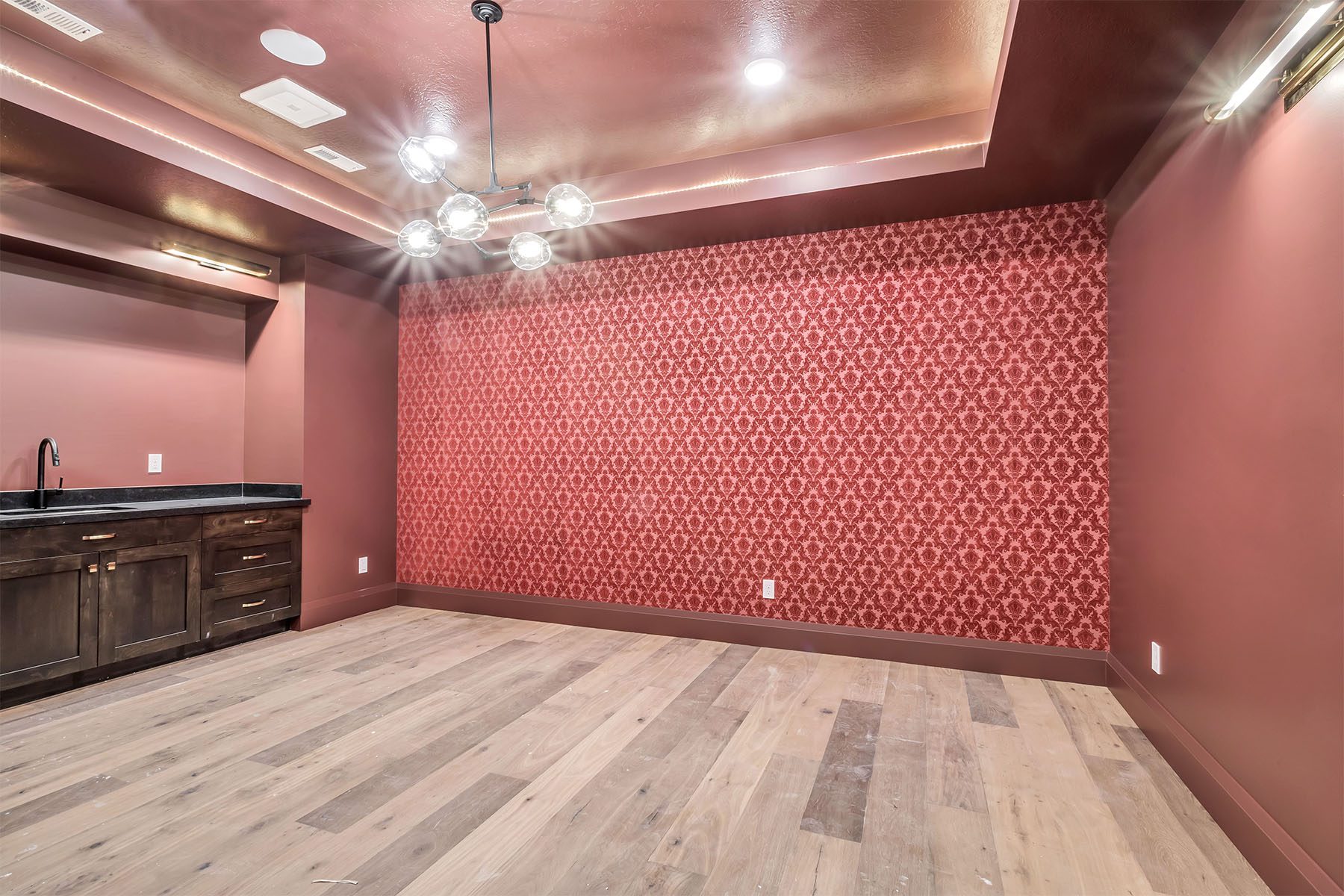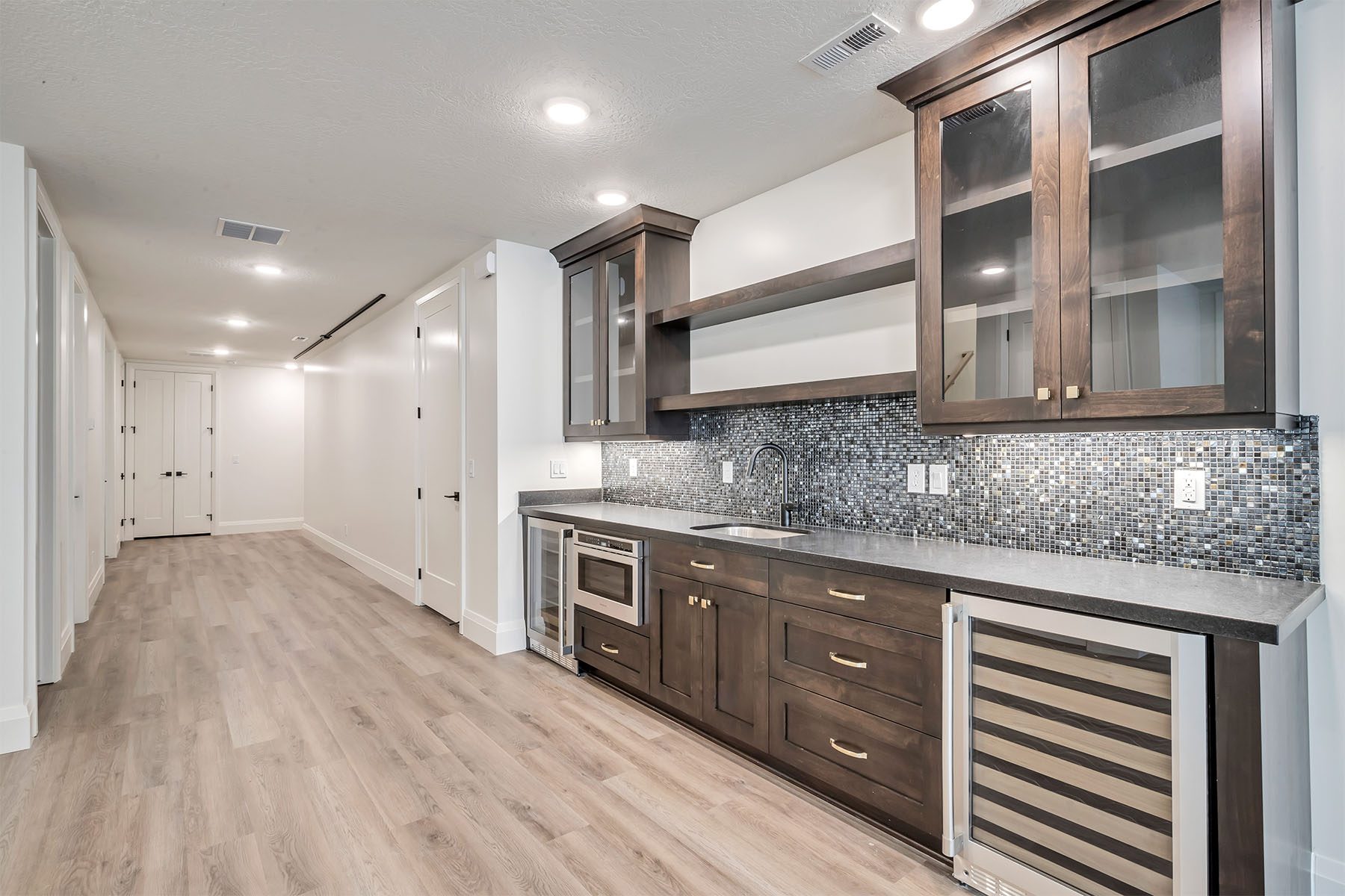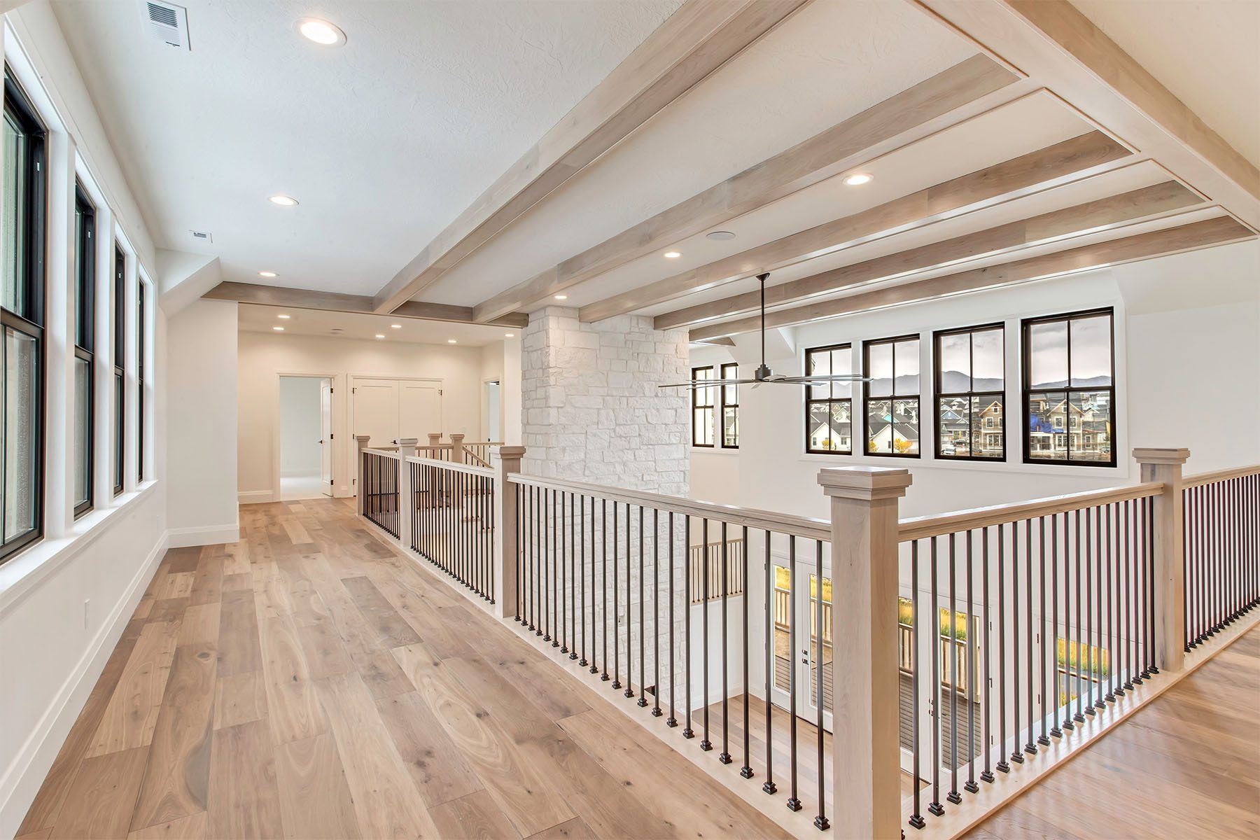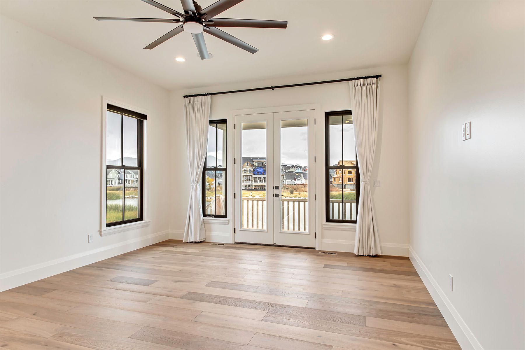 This luxury home on the Island at Daybreak boasts stunning lakefront views from its courtyard. The two-story great room is a showstopper, featuring beamed ceilings and a floor-to-ceiling fireplace, creating a warm and inviting atmosphere. The gourmet kitchen is both functional and stylish, with a hidden pantry for extra storage. The master suite, located on the main floor, has a private patio and breathtaking lake views. The fully-finished basement is an entertainer's paradise, offering a wet bar, spacious rec room, a hidden "Speak Easy", and a gym for fitness enthusiasts. The home is finished with luxury touches throughout, making it a truly unique and sophisticated residence.