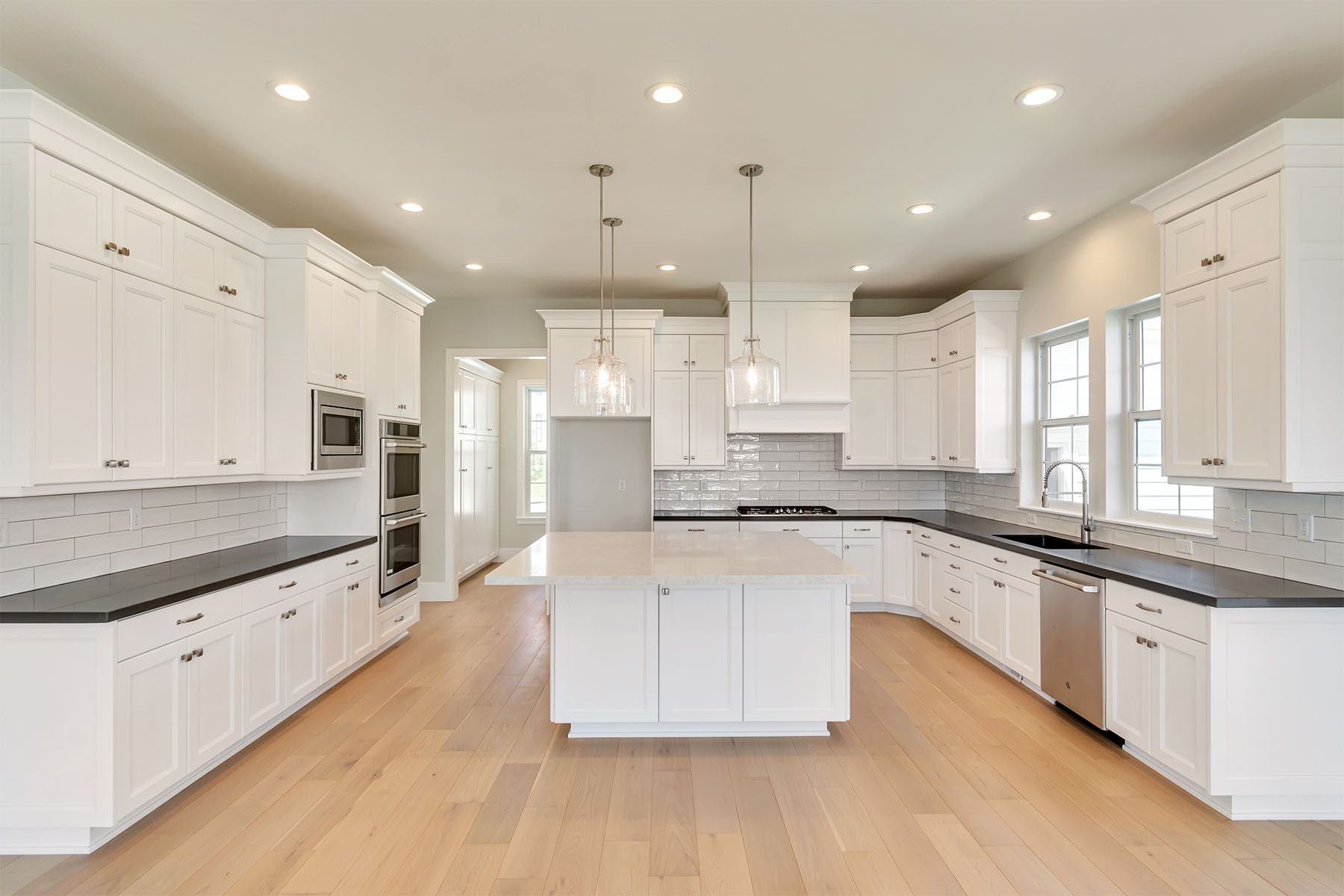 Gourmet kitchen with XL square island and designer finishes