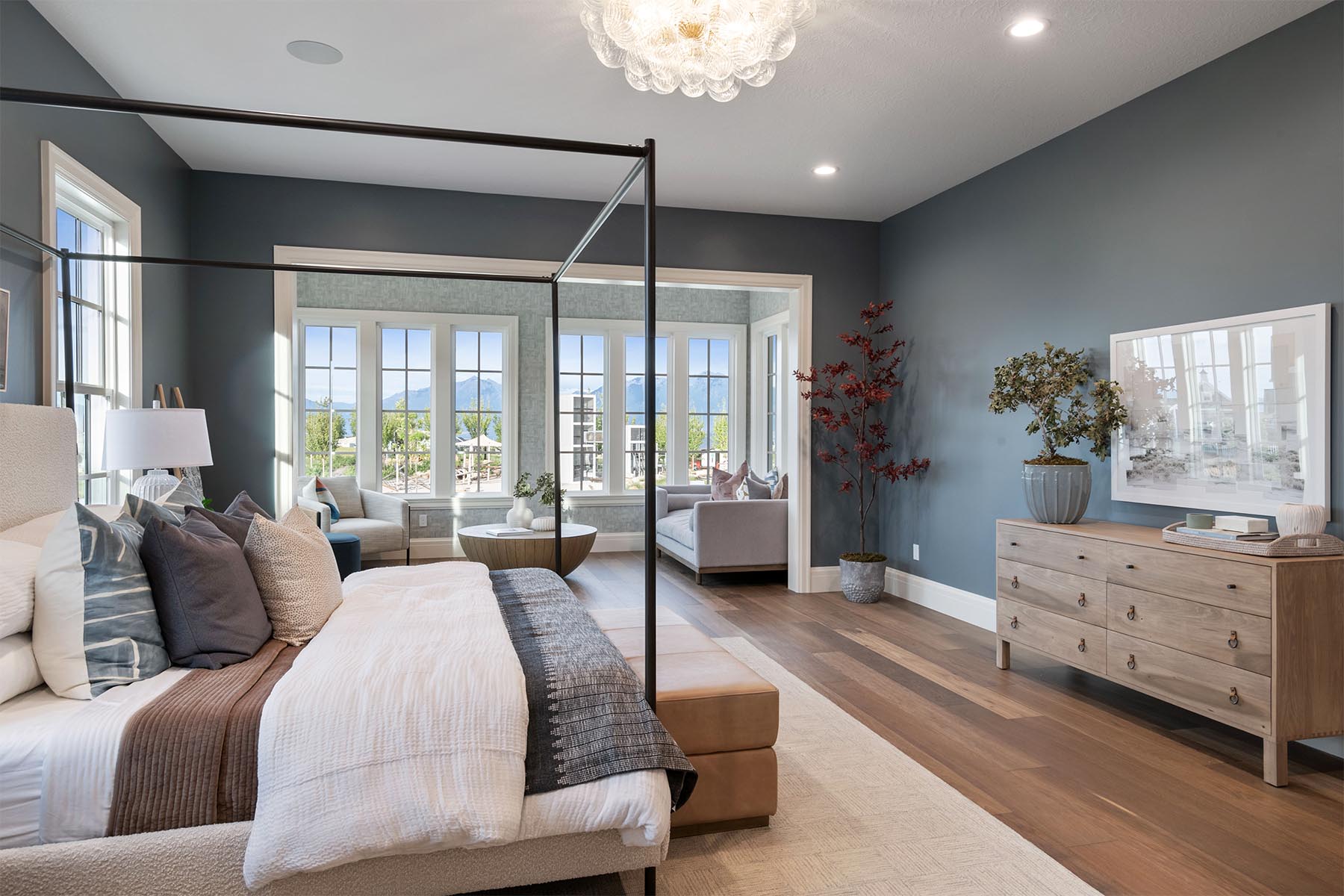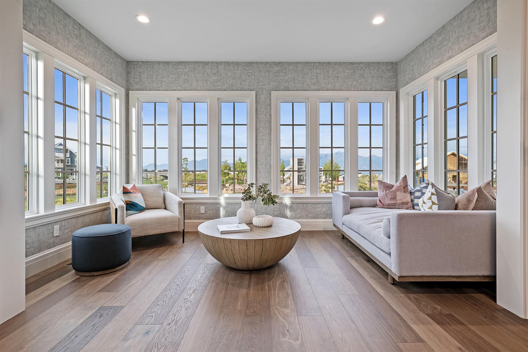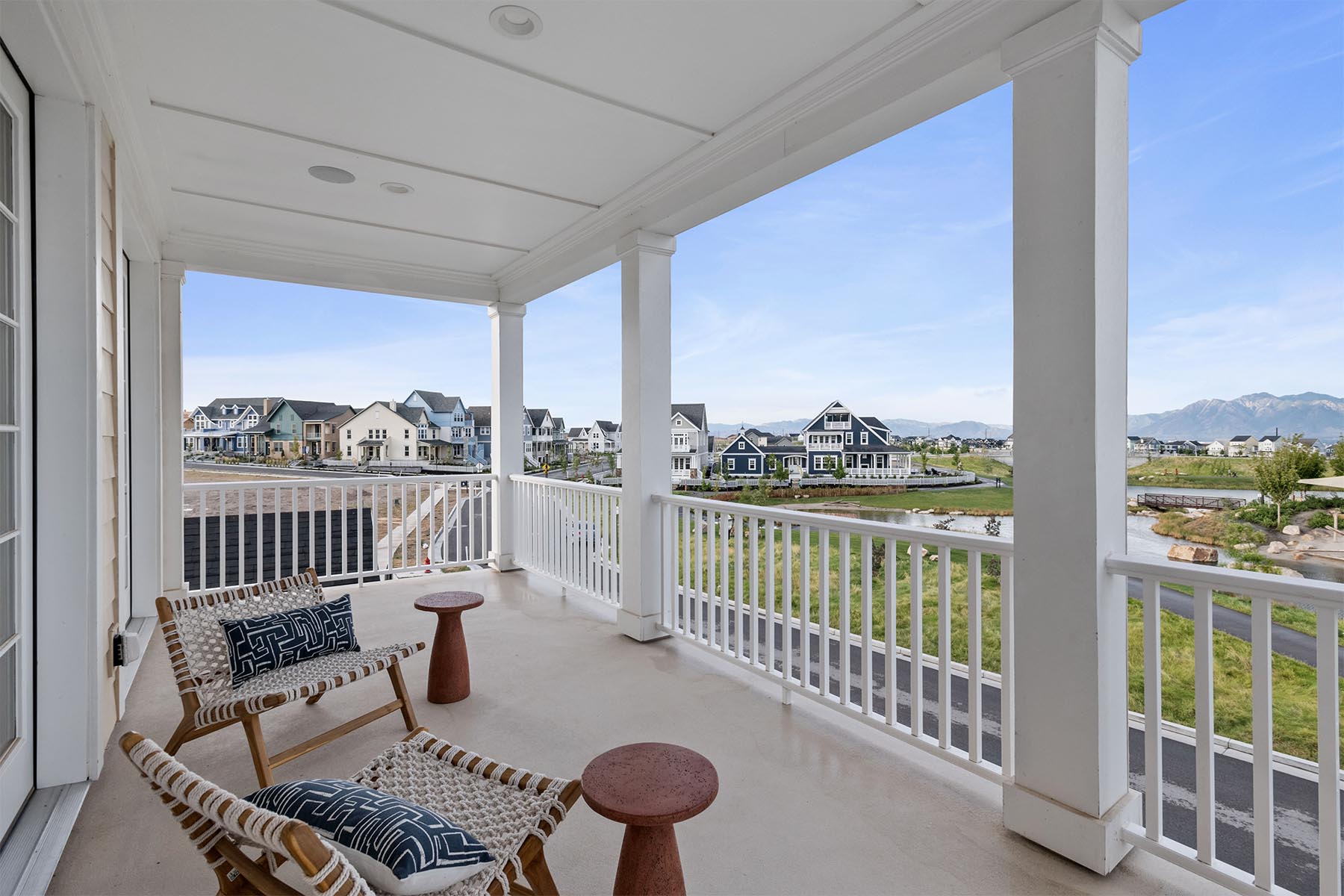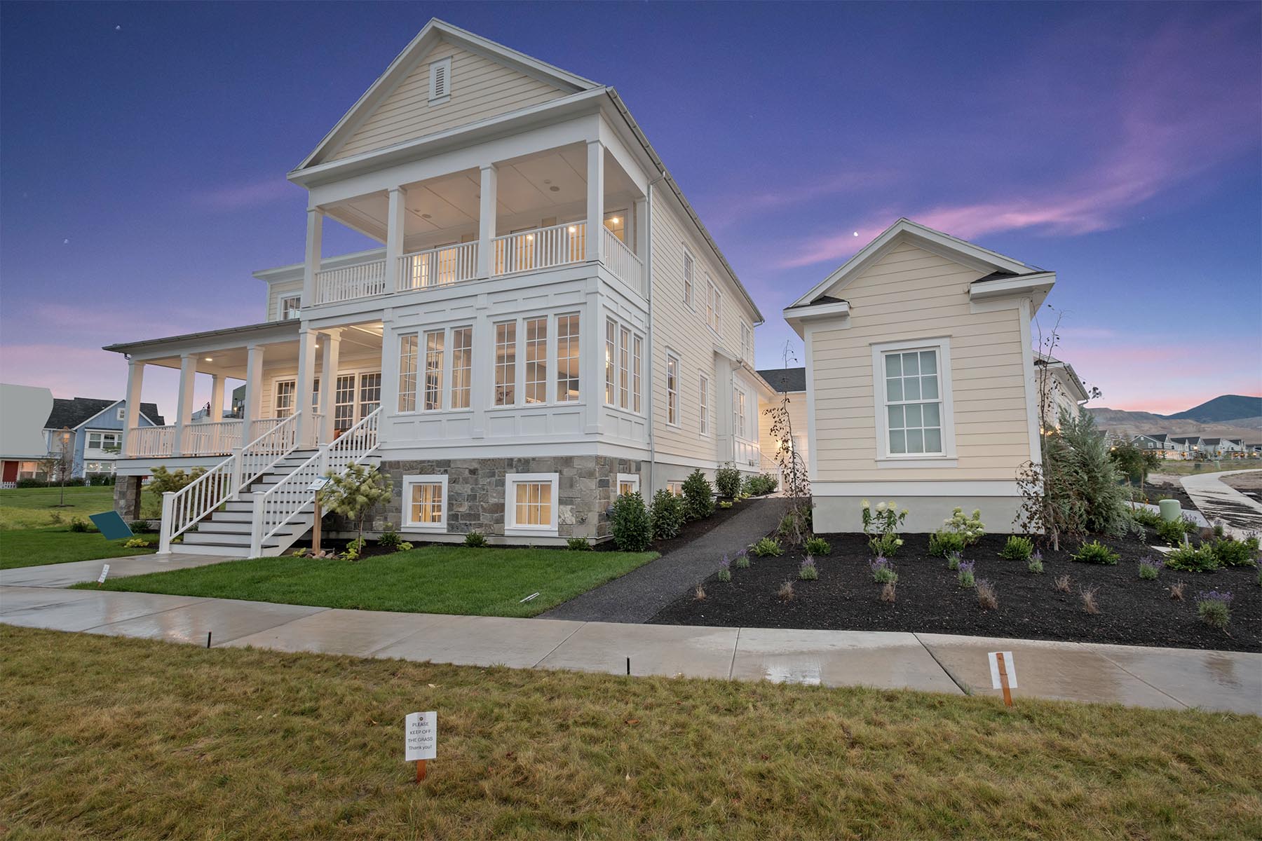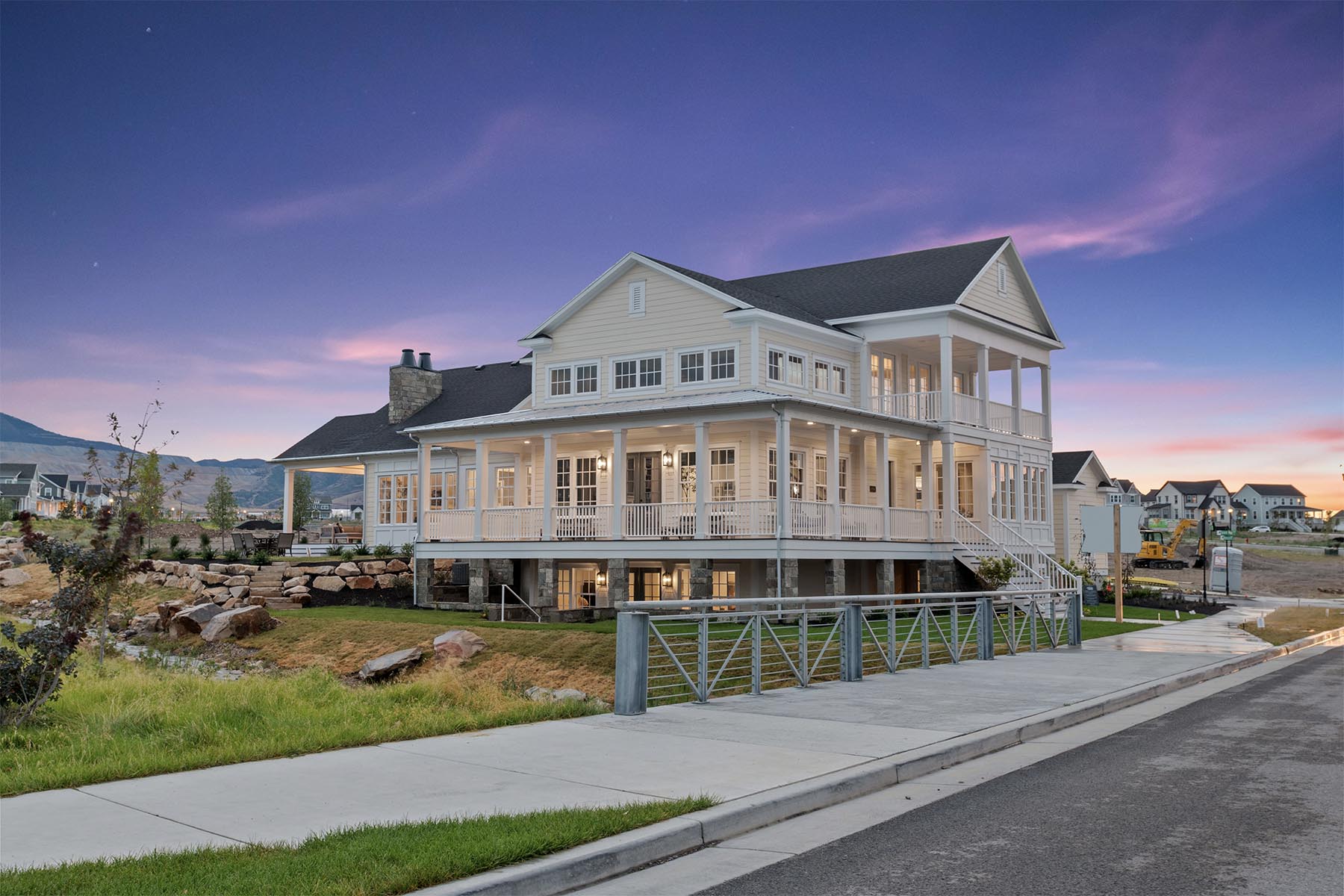 The Newport, featured in the 2024 Salt Lake Parade of Homes™, is a sophisticated mix of expansive indoor areas and ample outdoor spaces and is the quintessential Colonial floor plan. A well-appointed primary suite opens to a sun-filled sitting room, is serviced by the ultimate luxury bathroom, and boasts a walk-in closet with a centralized island for the ultimate in wardrobe management. The extensive covered porch space, including a charming wraparound front porch and a tranquil upstairs balcony, ensures plentiful opportunities for outdoor enjoyment. The main floor is designed with practical living in mind, offering a gourmet kitchen with butler pantry, a family room with vaulted ceilings, a dining/living room with 18’ ceilings, and a fully equipped laundry/hobby room. The walkout basement is fully finished, including a home gym, and three additional bedrooms alongside two bathrooms for guest accommodation or growing families.