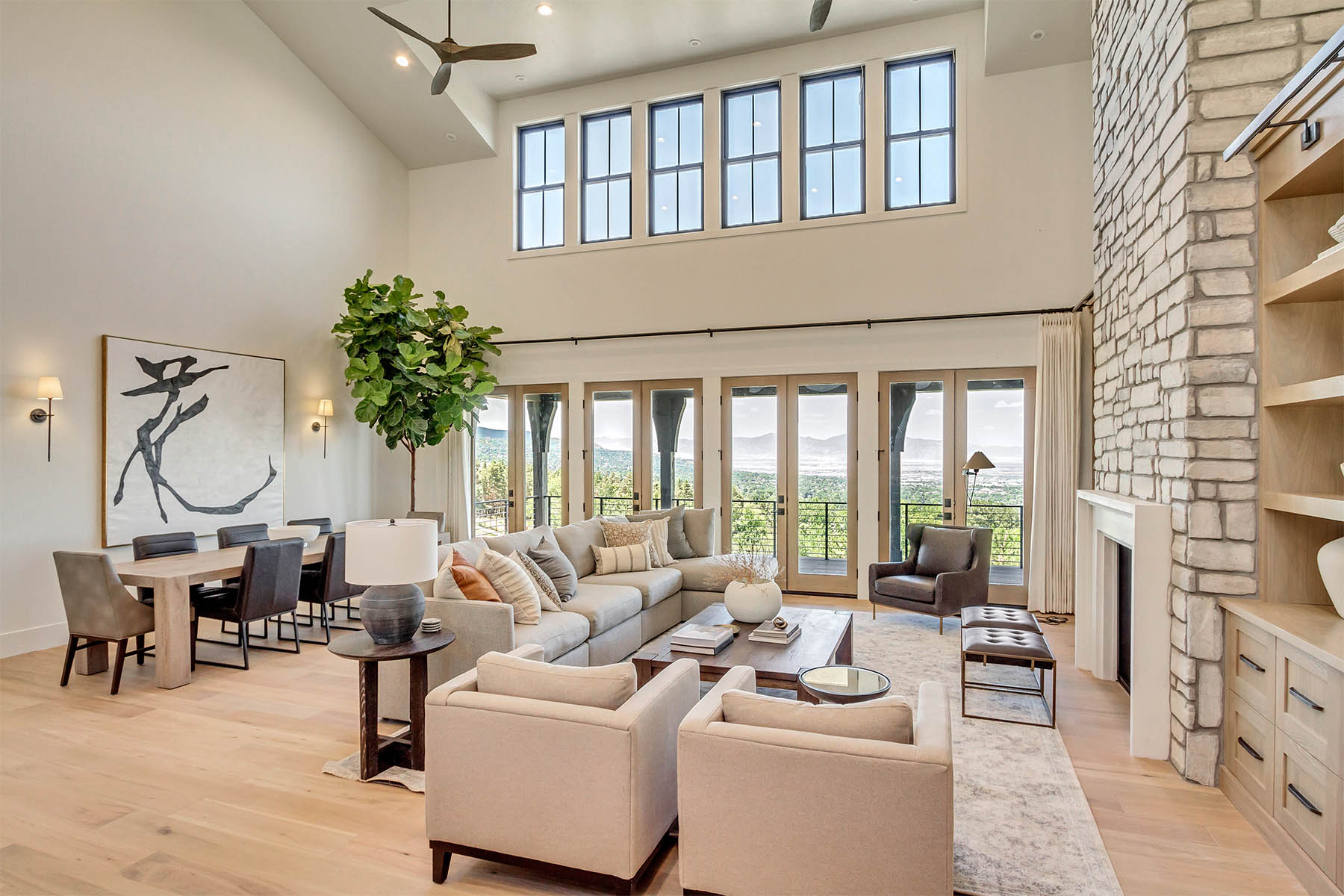 Featured in the 2022 Northern Wasatch Parade of Homes. This breathtaking home, located on the East Bench of Bountiful, boasts panoramic valley views that will leave you speechless. The master suite features a private balcony and fireplace, perfect for relaxing and taking in the views. The two-story vaulted great room is an entertainer's dream with plenty of space for family and friends. The walkout basement is an added bonus with its own home gym, theater room, and large wet bar in the rec room, making it the perfect spot for hosting game nights and movie nights. With so many incredible features, this home is perfect for those who love to entertain and enjoy the beautiful views of the valley below.